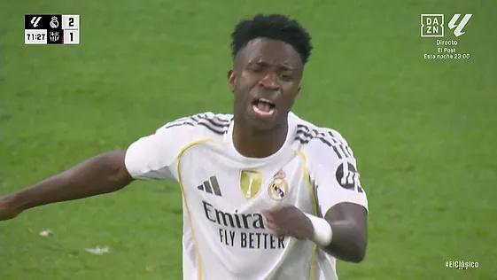 比赛的第71分钟,皇马换人。看到自己被换下,维尼修斯顿时暴怒,长时间对着教练席大声抱怨。看到这一幕,伯纳乌球迷长时间发出嘘声。